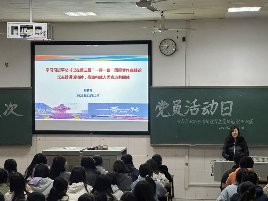 习近平总书记说,十年栉风沐雨,十年春华秋实。共建一带一路源自中国,成果和机遇属于世界。2023年1112晚,行知楼601教室座无虚席,刘梦琴书记作为党员活动日主讲人,为参会的全体学生党员、预备党员入党积极分子讲述《学习习近平总书记在第三届"一带一路"国际合作高峰论坛主旨讲话精神,加快推进人类命运共同体建设的党课