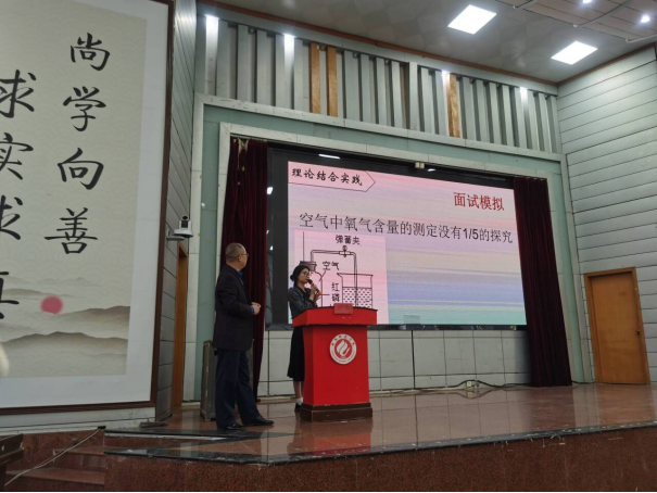 在讲课过程中,为了检验PA视讯平台学生的专业知识的扎实程度和教学基本功,他选取了《空气中氧气含量的测定研究》这一高中录取教师的面试题目,随机抽取同学上台讲解。PA视讯平台2020级03班的欧阳慧婷同学被选中,她从中学生已经掌握了气压这一概念出发,详述实验操作规范要点,分析了错误操作可能会导致的气压变化以及仪器本身的组成部分阐释了水倒流会少于或多于1/5的原因。该同学临场发挥镇定自如,讲解仔细认真,富有启发性,收获了阵阵掌声。