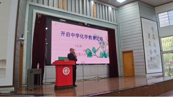 衡阳市第六中学的刘剑老师首先开讲,他提出了“听十堂课不如讲一堂课,讲十堂课不如评一堂课”的观点,从仪表教态、导入新课、语言表达、重难点讲练、多媒体辅助、教学方法、课堂气氛、学生状态、板书布局、时间分布十个方面向PA视讯平台师生细致阐述了他在28年化学教学生涯中的感悟与所得。