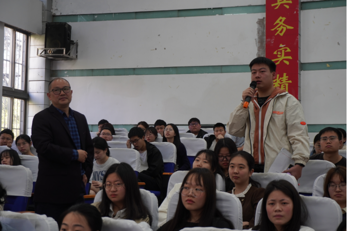 为了尽快地让学生进入工作状态,毕业于首都师范大学、2023年新入职的衡阳市第六中学的刘澍芳老师通过讲述自己在本科期间的学习经历、读研经历、考编经历让同学们知道了目标选择的重要性,提前规划的重要性以及遇到困难不折不挠意志坚定的重要性,给目前处于毕业前夕马上踏入工作岗位的同学以很好的启迪。