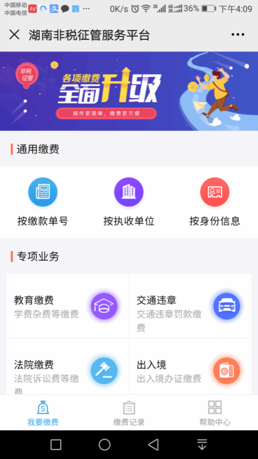 ① 扫描湖南非税移动缴费平台二维码,并关注“湖南非税”微信公众号