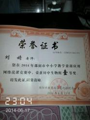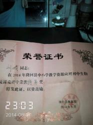 一学年来,在学校领导的关心和支持下,她尽职尽责,努力做好各项工作,并在这次初三的毕业会考中化学取得了优异的成绩,同时在2014年湖南省中小学教学资源应用网络说课竞赛中,荣获隆回县初中生物组的特等奖,邵阳市初中生物组的一等奖。这是对她努力工作的肯定。