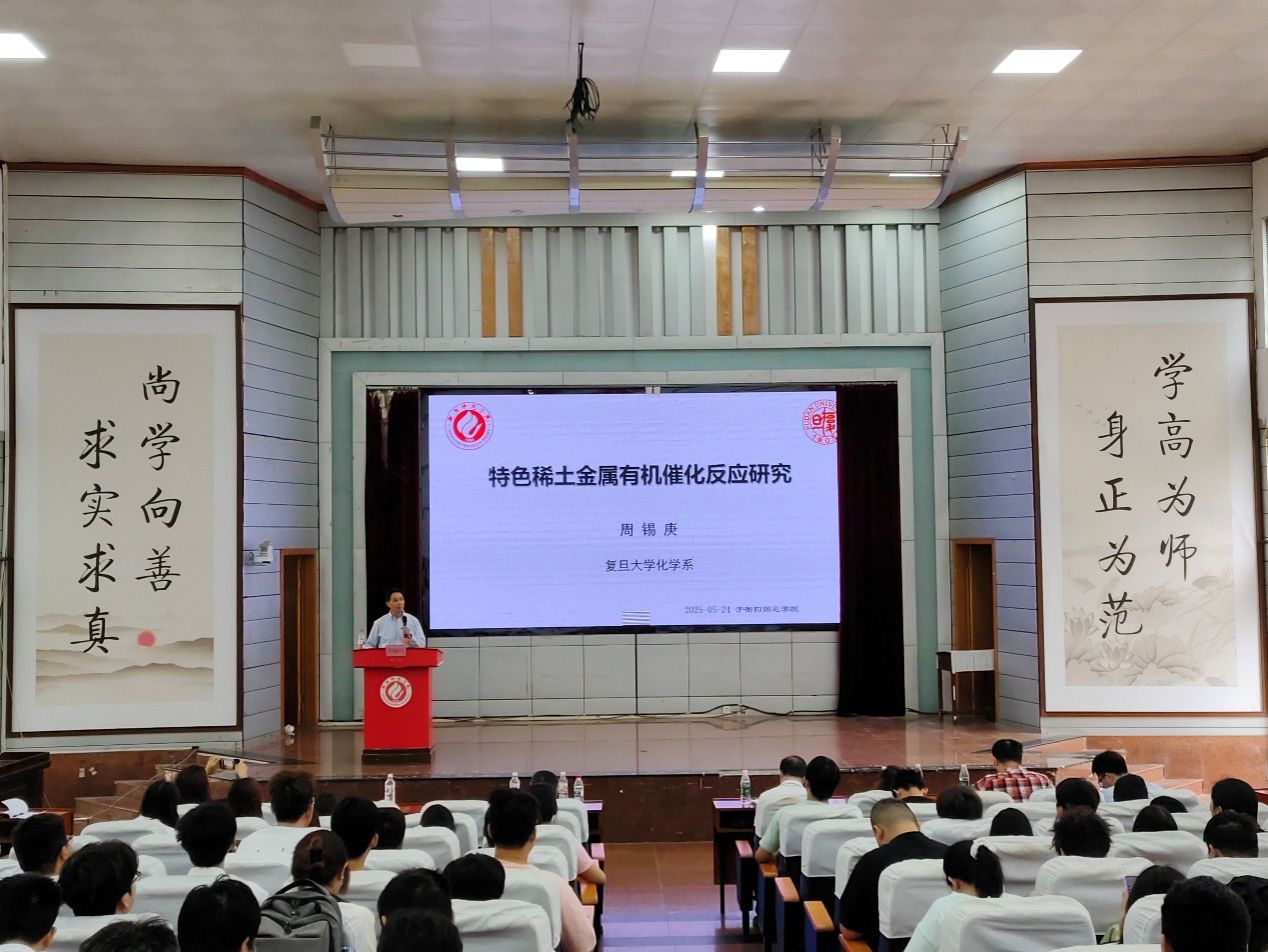 随后,周锡庚教授进行了题为《特色稀土金属有机催化反应研究》的专题报告,展示了稀土催化在精细化学品合成、药物中间体制备等领域的创新应用案例。周教授还分享了他们团队的最新研究工作。在互动环节,师生们围绕中心金属元素的选择、反应选择性调控等专业问题与两位教授展开深入探讨。