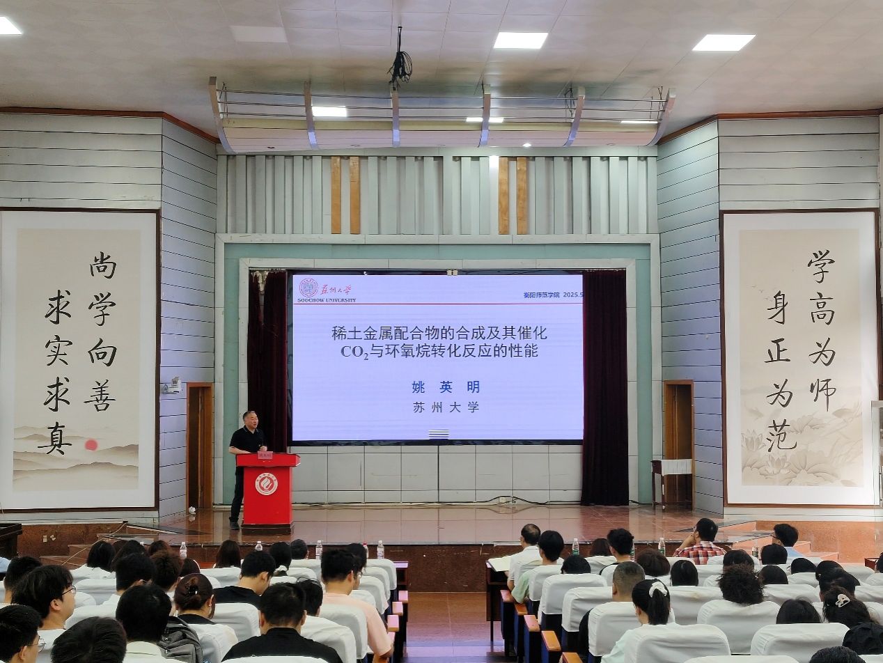 首先,姚英明教授进行了题为《稀土金属配合物的合成及其催化CO2与环氧烷转化反应的性能》的学术讲座,姚教授系统阐述了其团队在稀土催化剂设计领域的最新进展。通过精准调控配体结构及改变中心金属等策略,他们成功开发出多系列高活性稀土配合物催化剂,实现了CO₂与环氧烷类化合物的高效转化,为二氧化碳资源化利用及可降解高分子材料的合成提供了创新的解决方案。
