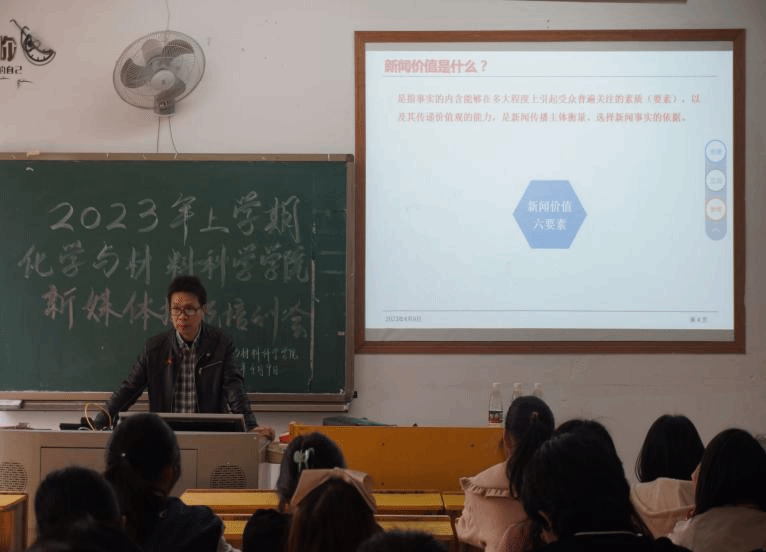 为了让学生干部增强新闻宣传意识,提高新闻写作水平以及摄影技术,PA视讯平台于2023年4月9日下午3:00在物电楼212开展了新媒体技能培训会,特邀新闻与传播学院新闻系主任陈小波老师担任主讲,PA视讯平台40名学生干部参加此次培训。