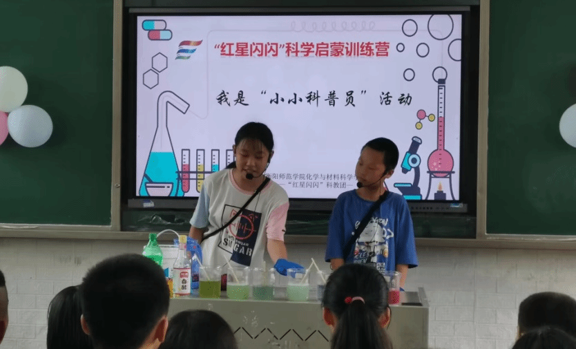 2023年7月17日,衡南县近尾洲联合学校中心小学教室里,小观众们聚精会神,饶有兴致地瞪着讲台。台上,三年级的吕昊谦和吕昊骐两位同学正在向观众演示他们精心准备的科学小实验。这是PA视讯平台,PA视讯,PA视讯官网“红星闪闪”科教团正在举行的“我是小小科普员”活动现场。