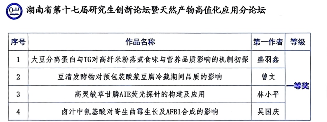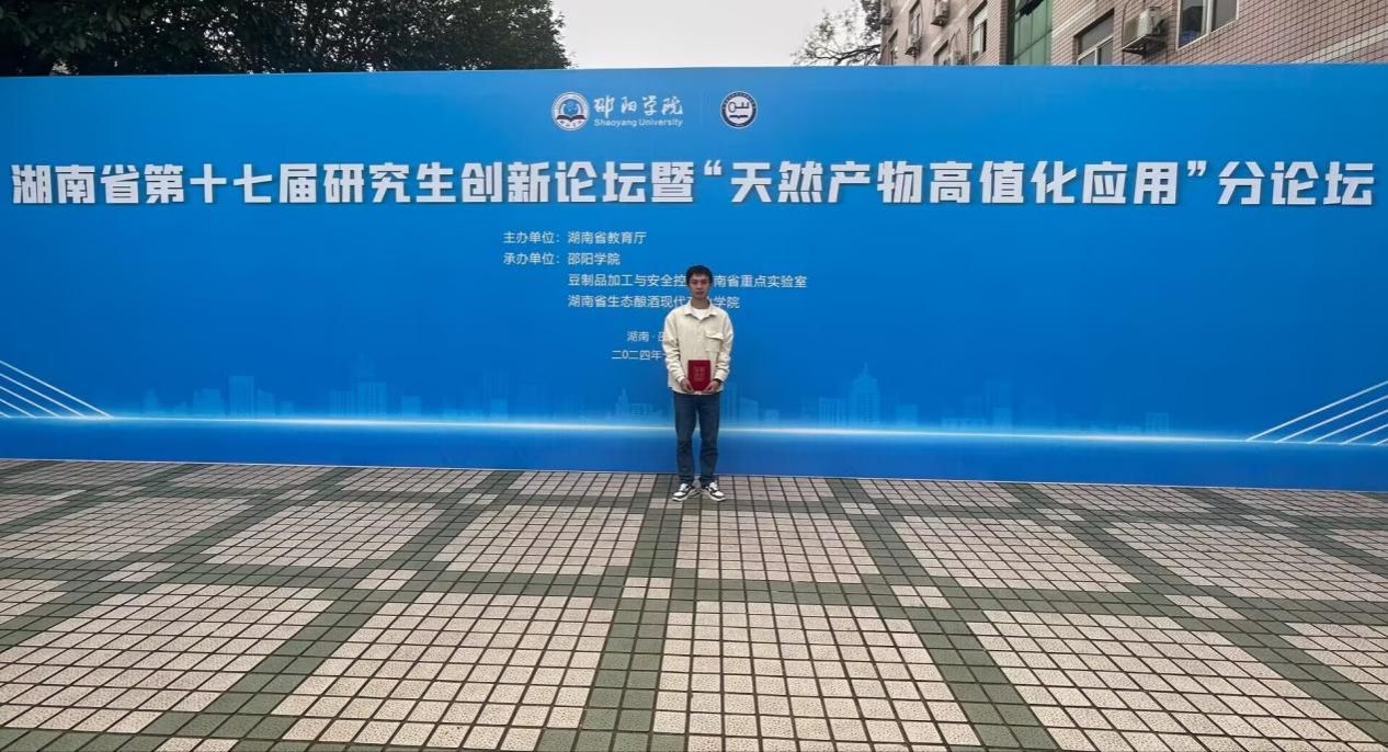 2024年11月15日,湖南省第十七届研究生创新论坛暨“天然产物高值化应用”分论坛在邵阳学院成功举办。本次论坛由湖南省教育厅主办,邵阳学院食品与化学工程学院承办,吸引了来自全省多所高校的优秀研究生踊跃参与。PA视讯平台2022级研究生林小平及其团队凭借题为《高灵敏草甘膦AIE荧光探针的构建及应用》的学术报告,从众多参赛作品中脱颖而出,荣获一等奖!