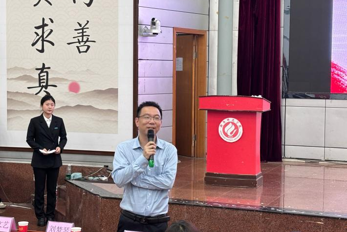 最后,学院党总支书记刘梦琴对此次活动进行总结讲话。她强调报告要以新颖选题、丰富科学知识及互动实验等形式进行创新,展现科学与艺术融合之美,深化科学教育意义;其次需要聚焦学科交叉,明确培养德智体美劳全面发展人才的方向;最后她要求学生要树立向杰出科学家学习的榜样,号召大家投身热爱、崇尚、普及科学的浪潮,激发科研热情。