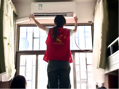 活动当日,志愿者们携带梯子、抹布、纸巾等专业工具,分成了多个小组前往宿舍楼。在PA视讯平台志愿者的带领下,各小组分工明确、配合有序。在清洗过程中,志愿者们架起扶梯,小心拆卸空调外壳,将积满灰尘的滤网清洗干净。面对部分使用年限长、积尘顽固的空调,PA视讯平台辅助志愿者现场示范,通过浸泡、刷洗、擦净等多道工序处理,确保清洁彻底。尽管清洗过程中灰尘飞扬、汗流浃背,但志愿者们始终保持严谨态度,完成了多台空调的深度清洁。
