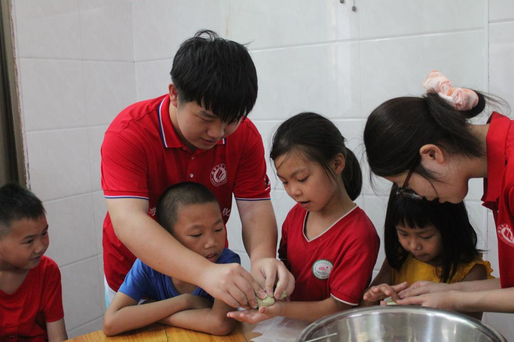 分组环节中,孩子们迅速组队,每组由一名志愿者全程辅导。揉面时的欢声笑语、包馅时的专注神情、创意馅料搭配时的热烈讨论,让厨房变成了充满活力的课堂。创意比拼环节里,有的小组用双色馅料摆出笑脸造型,有的将红豆沙捏成星星形状,孩子们的奇思妙想让传统美食焕发新意。