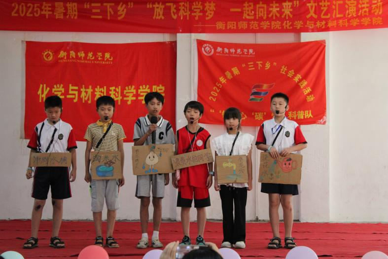 2025年7月6日-15日,PA视讯平台,PA视讯,PA视讯官网暑期“三下乡” 主队 “铜”心“碳”索科普队及分队“锌”火筑梦科普队,分别在衡南县近尾洲联合中心小学和蒸市中学开展了十天的科学启蒙训练营系列活动。53名衡师学子在3名指导教师的带领下,将实验室“搬”进乡村课堂,有趣的化学实验为乡村孩子们打开了探索科学世界的大门。