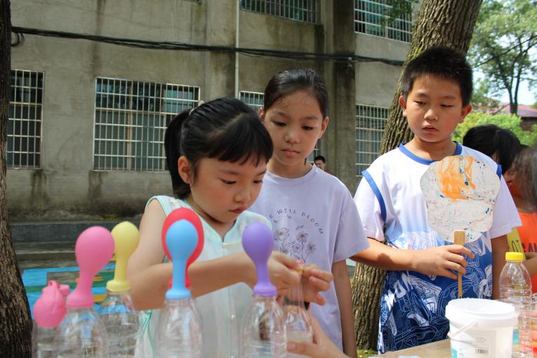 科学课里,团队将化学趣味实验成为点亮好奇的火炬,孩子们观察酸碱指示剂变色的惊叹模样,围绕“糖和盐的溶解”的热烈讨论,操作“奇妙彩虹雨”趣味实验的团结协作,《海底火山大爆发》《水质检测与净水》《铁锈与土地的悄悄话》等30节科学课,孩子们在学习与探究中发现身边的科学奥秘。为了促进学科交叉融合,创新科学教育,团队开设了歌曲中的科学、科普绘本阅读、环保主题手工等“科学+”课堂。