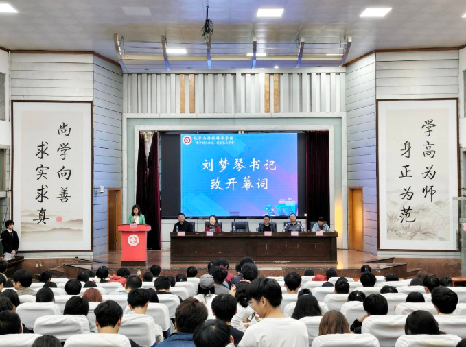 开场视频以生动的影像语言表达了化学创新在湖南"七个一"政策引领下的全新活力。党总支书记刘梦琴在开幕致辞中强调,科技创新是学院立身之本。近年来,学院在科研项目、成果转化、人才培养等方面取得了丰硕成果。她指出,为顺应时代发展,学院将创新创业教育置于突出位置,积极响应湖南省支持大学生创业的政策,抢抓机遇,激发师生的创新活力。她号召全体师生以院徽院训为指引,弘扬“追求卓越、勇于创新”的精神,教师引领、学生追梦、全员同行,营造崇尚创新的良好氛围,为学院和国家的发展贡献智慧与力量。
