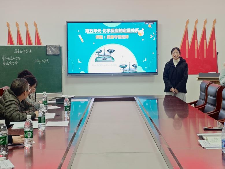 活动采用抽签的方式,随机抽选人员进行讲课。汇报现场,师范生们依次登台,王广军、申佳铃等十位同学围绕《水的组成》《质量守恒定律》《金属材料》《物质的量》等经典化学课题展开教学展示。申佳铃同学精心设计教学环节,以“狄仁杰的困惑”趣味提问引出《化学反应定量关系》,结合生活中的常见现象展开讲解,生动易懂。李俊华老师从PPT视频准备、时间把控两方面指出其现存问题,付伟伟副院长补充点评,既肯定她扎实的教学素养与基本功,也建议在授课中注入更多激情,让课堂更具感染力。