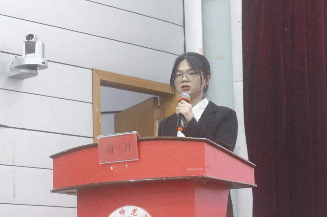 随后,在科创优秀学生代表发言环节中,谢丹、楼新盛、卿箐箐三位同学分别从科创的意义、科创比赛类别及比赛的感悟等方面分享了他们的科创经历。谢丹同学结合自身科创经历告诉学弟学妹们,创新需要耐心和努力,科研不仅仅是为了荣誉,更是为了提升能力和增长见识。