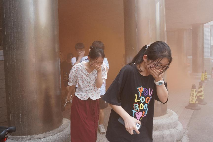 随后,急促的警报声响起、浓烟弥漫,拉开了消防疏散演练的序幕,大家捂住口鼻,顺着墙壁,跟着安全疏散标识,弯腰小步快走,迅速有序地下楼,来到安全空旷的室外篮球场。