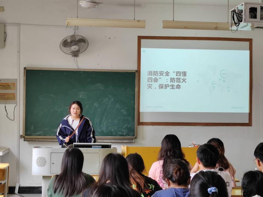 演练前,姚尽沙老师、谢峥老师、钟彪老师、唐升老师四位辅导员老师以“消防安全‘四懂四会’:防范火灾,保护生命”为主题,向同学们详细地讲解了相关消防安全知识和消防疏散演练要求。
